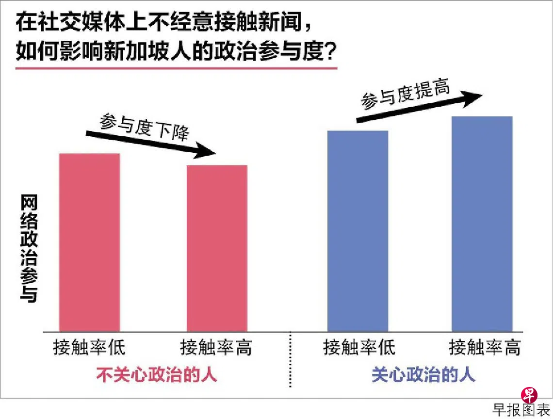 政党若频繁地通过社交媒体散播信息,可能让对政治不感兴趣的选民更加冷感。南洋理工大学一项研究显示,在社媒不经意接触到新闻的频率越高,原本就对政治缺乏兴趣的人,政治参与度会进一步下降。