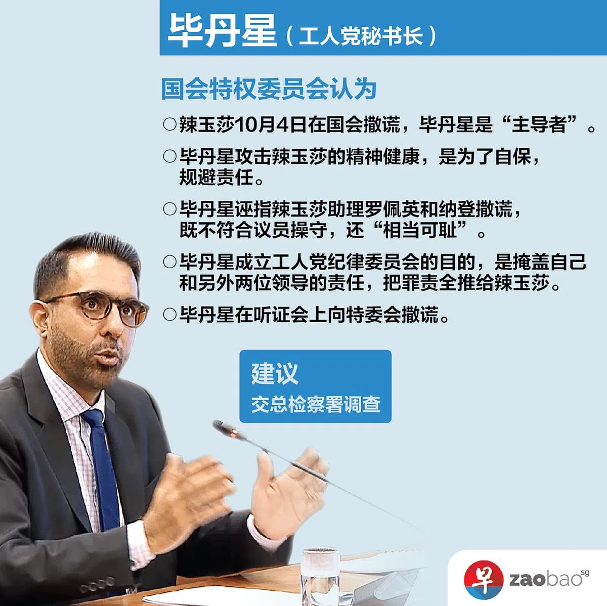 特委会的调查推论,在去年8月8日之后,辣玉莎是在三位工人党领导的指导下瞒住实情的,并在去年10月3日得到毕丹星进一步指导的情况下,隔日在国会再度撒谎。