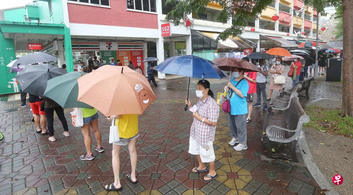 许多民众到义顺5道第102座的多多旺地下注,排队人龙不曾间断,而且一直维持在120米以上。不少民众撑伞排队,当中不乏加码下重注者,以及到全岛投注站“跳旺地”的人。