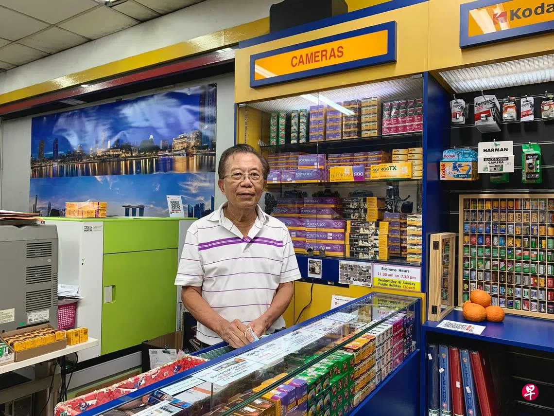 递过名片的是相片冲洗店老板王诗发(70岁)。他在黄埔道的相片冲洗店已有近40年的历史,每天到店里来的不仅有摄影发烧友,也有不少刚接触胶卷和旁轴相机的年轻人。