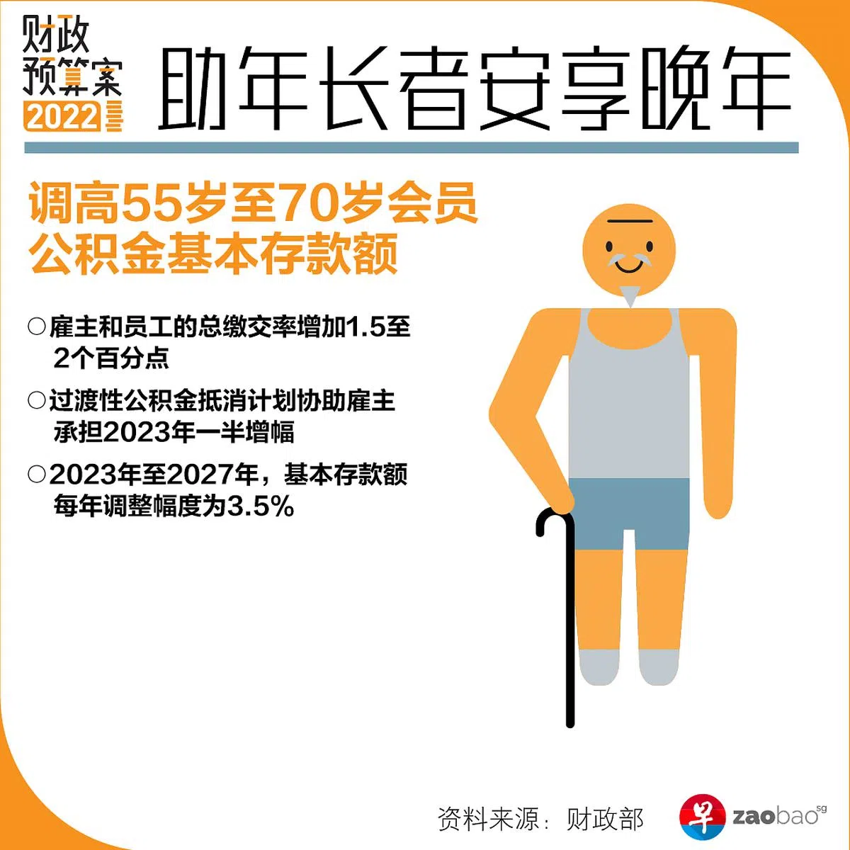 年满55岁员工的公积金基本存款额将在下来五年逐步调高,每年的调整幅度为3.5%,助年长者增加退休储蓄。