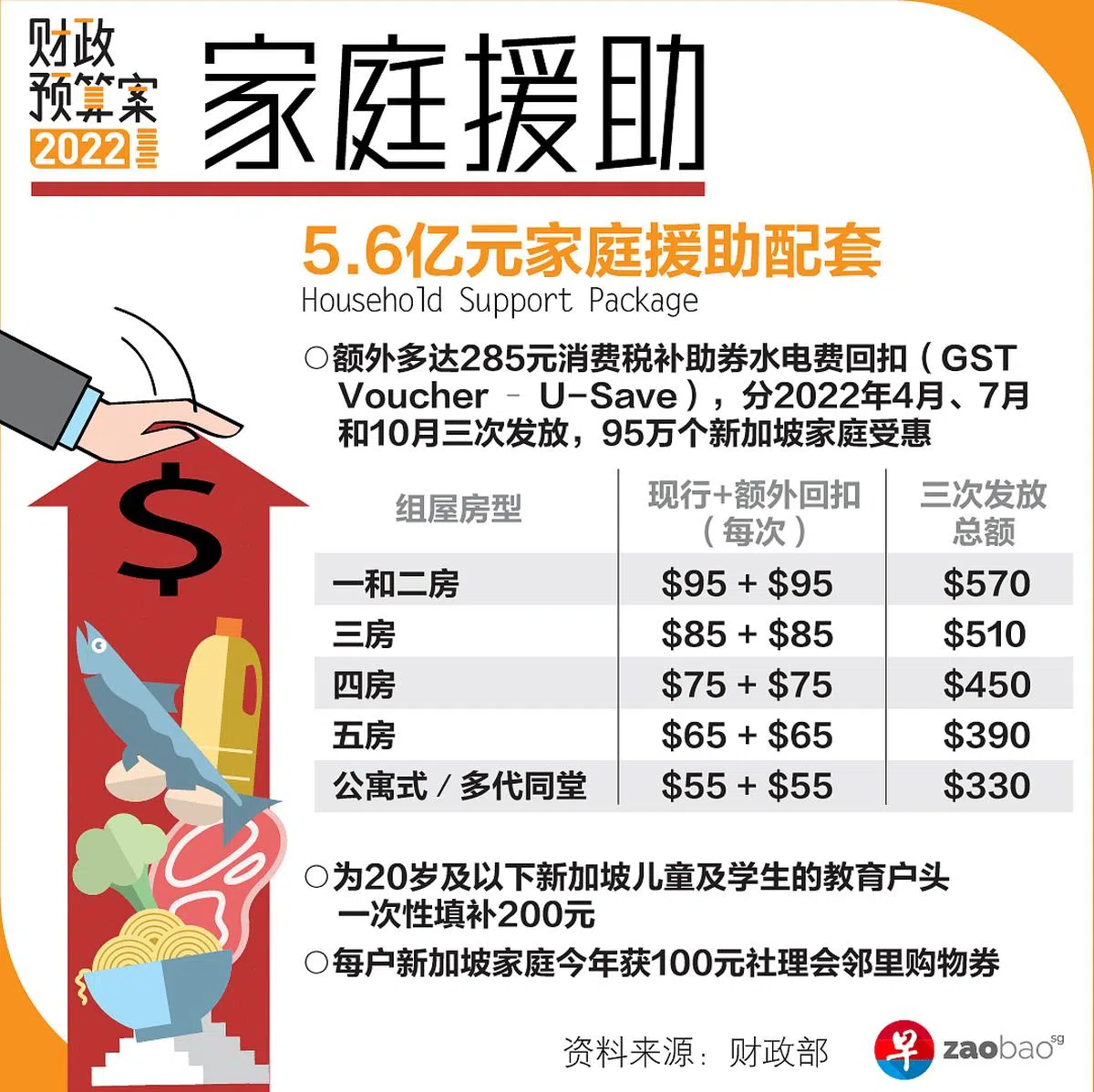 共计5亿6000万元的家庭援助配套(Household Support Package)。