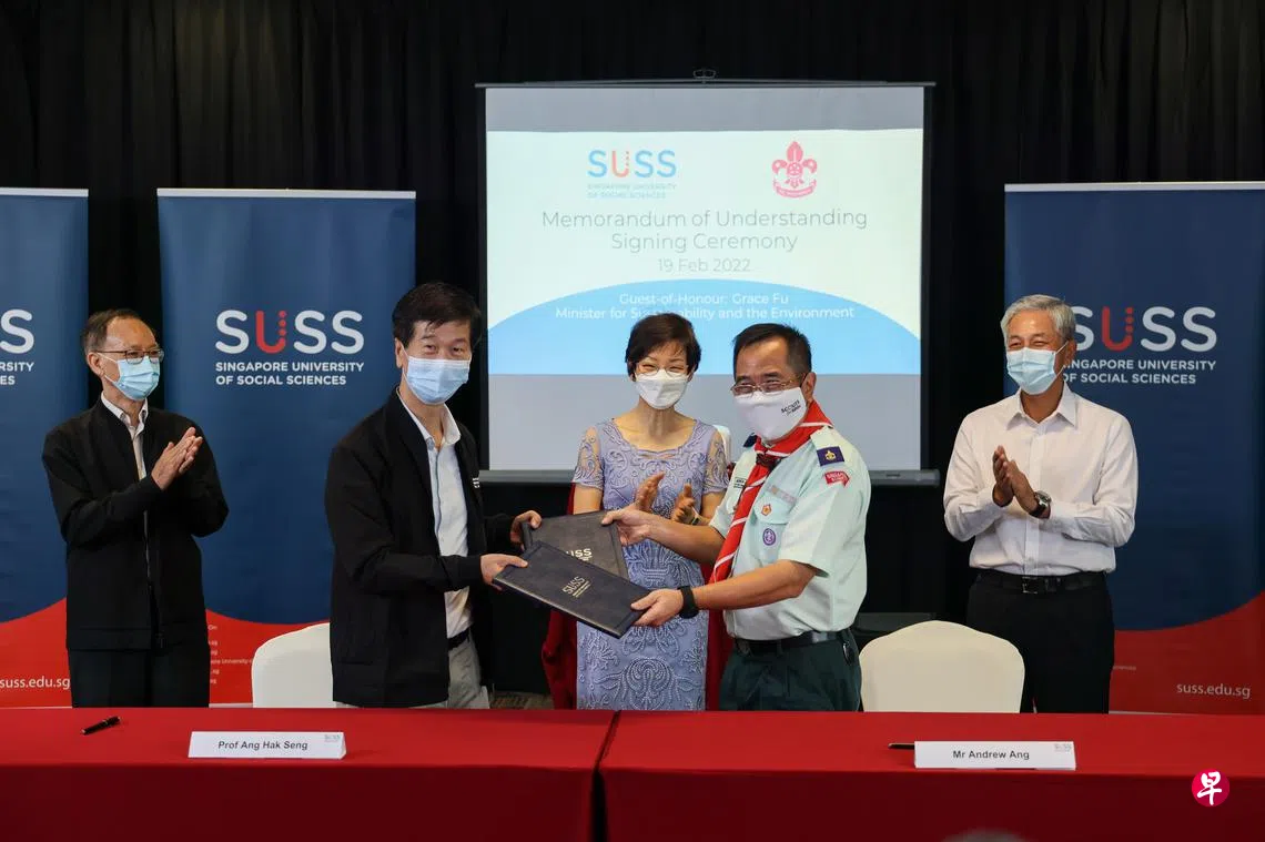 跃大前天与童军总会签署谅解备忘录,鼓励青年动员社会各群体,共同推进新加坡绿色计划和其他社会事业。