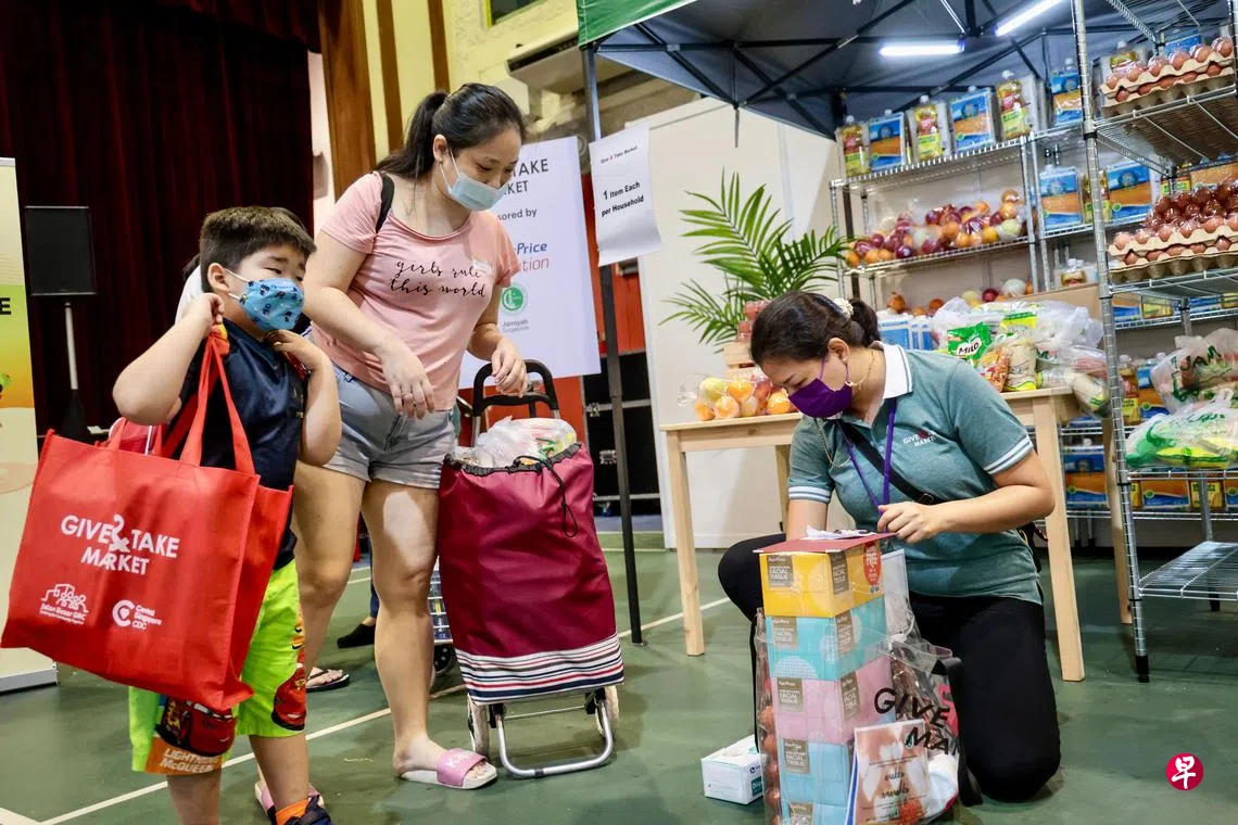 这项名为众乐超市(Give and Take Market)的计划每个月在惹兰勿刹集选区的一所民众俱乐部举办,自去年10月开始至今有约1600户低收入家庭受惠。他们都居住在租赁组屋,并有19岁及以下的孩子。