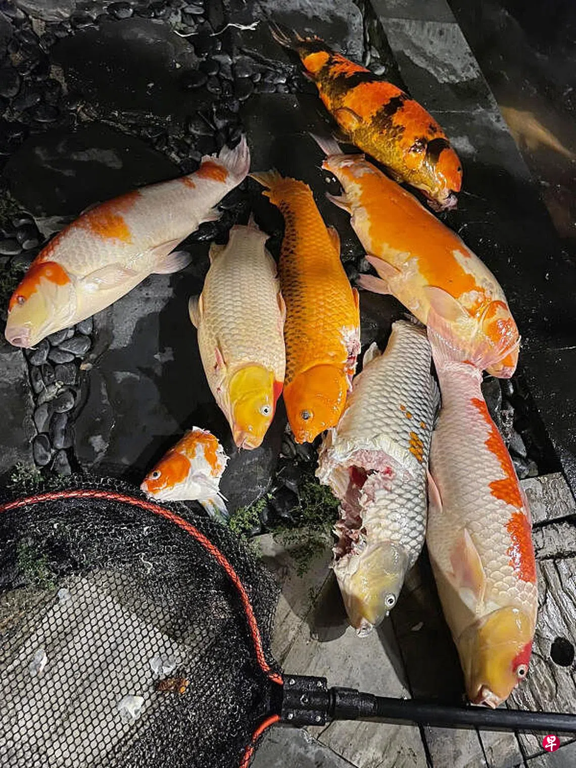 住在杨厝港一带的苦主张先生(55岁)则表示,女佣周二早上发现6条锦鲤浮在鱼塘中。他调阅电眼发现,凌晨约2时30分,四只水獭从铁门缝隙闯入,到鱼塘咬死6条锦鲤,另两条锦鲤则被咬伤。