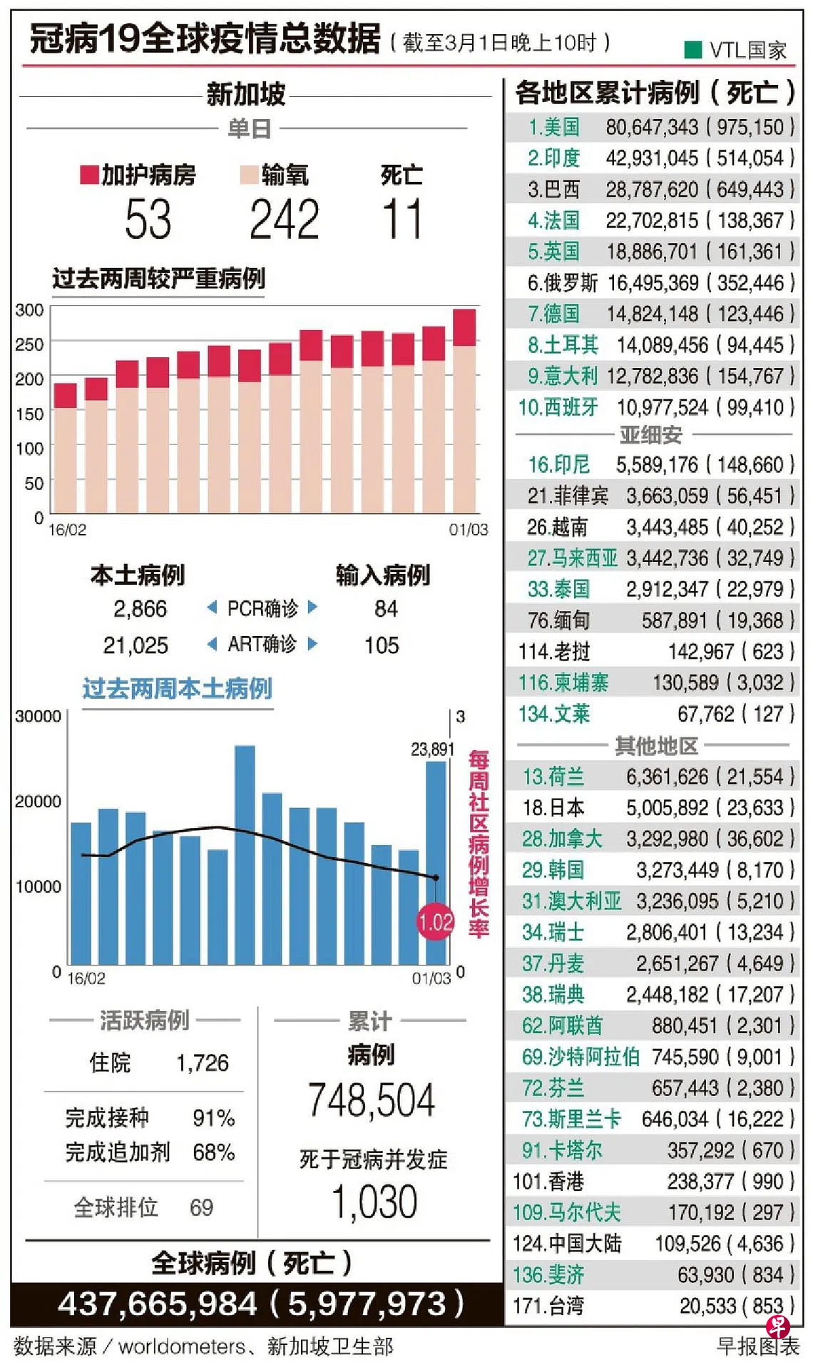 截至昨天中午,本地有1726名冠病病患住院,比前天多了77人。重症病患从270人增至295人,其中242人需要输氧,53人在加护病房。