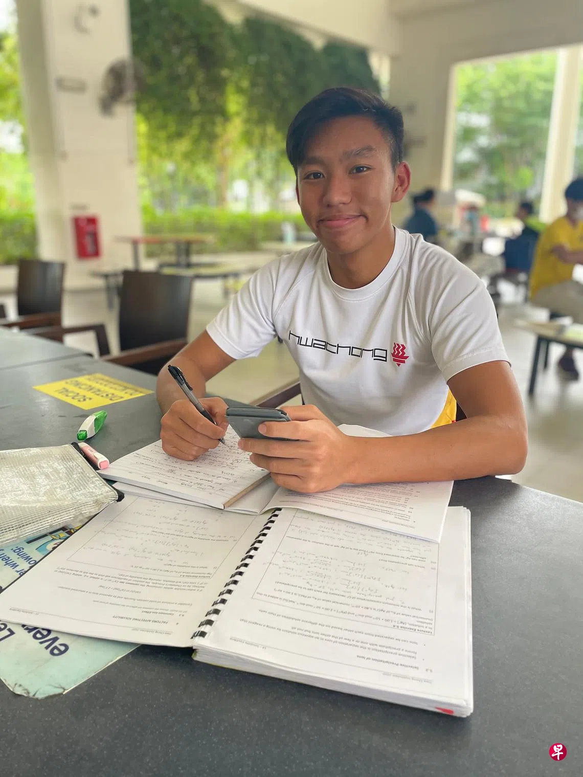 待陈子耀结束训练回到直落布兰雅的住家,已过了晚上8时。“每天都要学习到半夜,所以会特别抓紧课间和训练前的零碎时间读书做习题。”