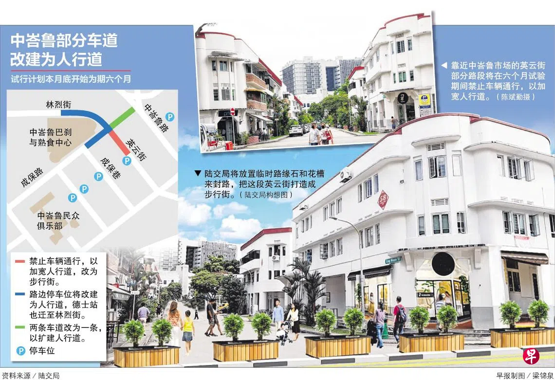 本月底将在中峇鲁巴刹与熟食中心附近展开的六个月试验计划,将改善那一带的社区空间和步行环境,让行人出入更安全,共有45个停车位和12个电单车位被移走,部分街道禁止车辆通行。