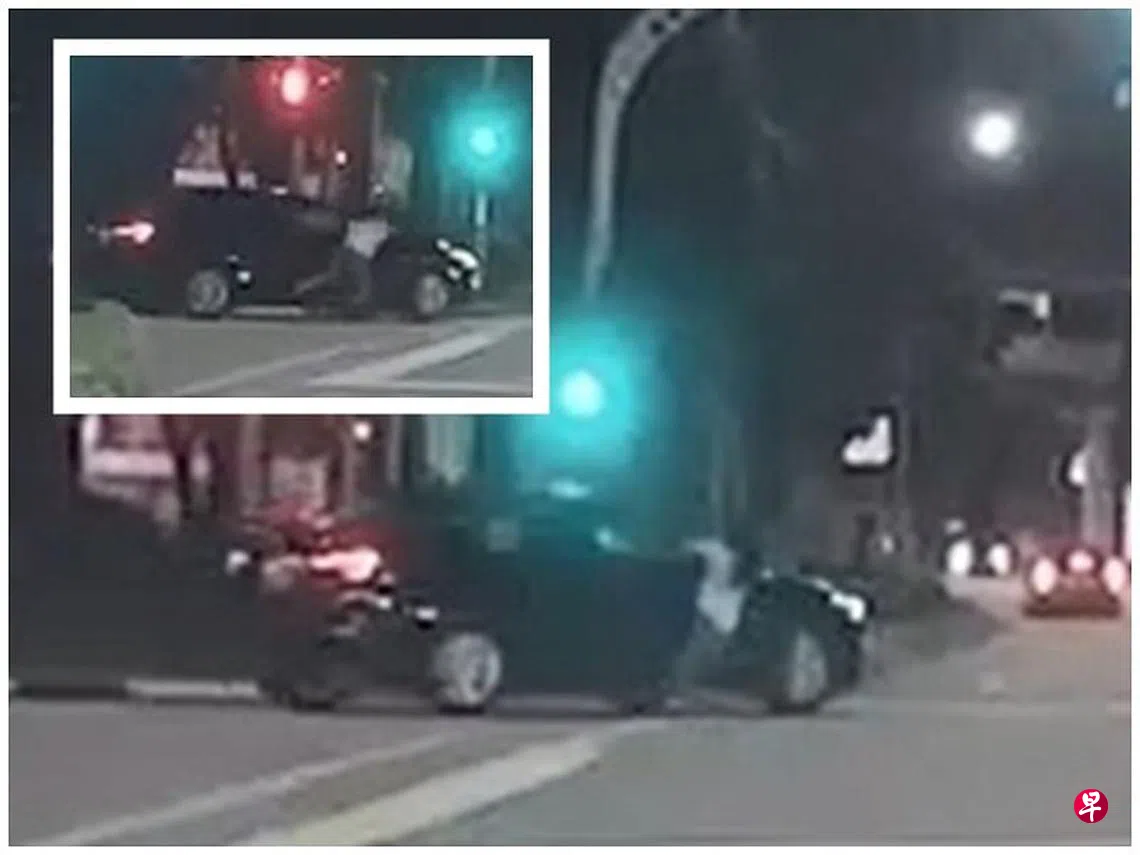 这起事故发生在本月7日晚上11时15分,一辆黑色轿车从多美歌一带布连拾街拐进密驼路时,有一名女郎紧抓着车子不放,过程被附近一辆轿车的行车记录器拍下。