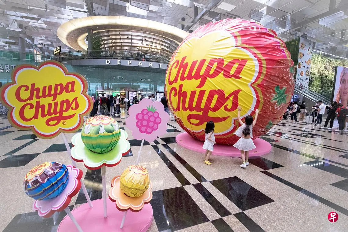 从即日起至5月3日,机场第三搭客大厦(T3)将布满多个大小各异的经典品牌Chupa Chups棒棒糖装置,其中一个11.1米长、4米高的大型草莓口味棒棒糖还入选了新加坡纪录大全(Singapore Book of Records)。