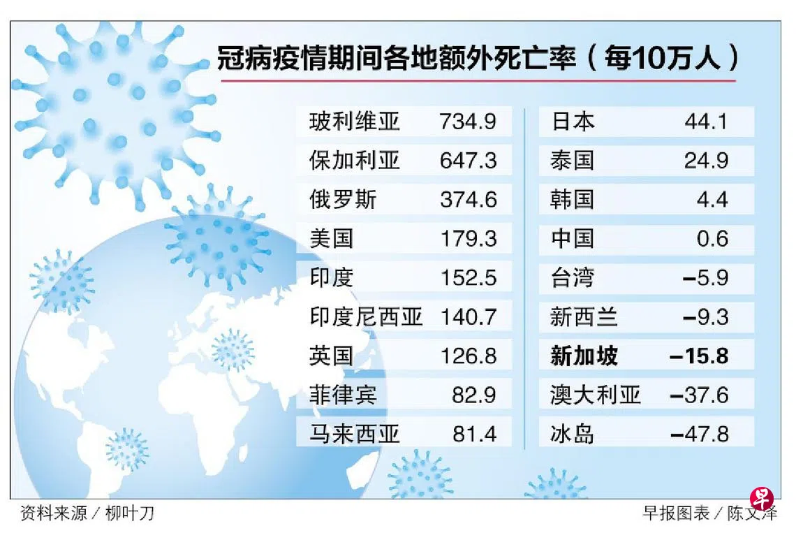 研究人员调研了2020年1月1日至去年12月31日191个国家和地区的死亡数据后发现,新加坡过去两年的额外死亡率(excess mortality rate)呈负数,为每10万人中负15.8。