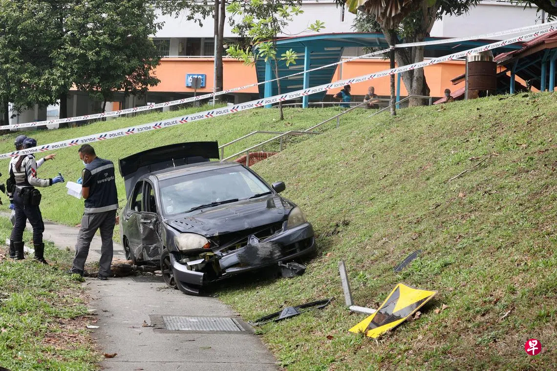 他随即拿出手机拍摄视频,拍摄时目睹三名男子先后从轿车爬出来,然后有的爬上阶梯有的跑上斜坡,纷纷往组屋区的方向跑去。