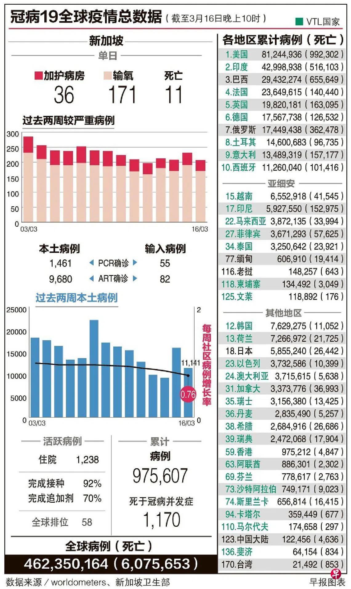 根据卫生部网站昨晚更新的疫情数据,截至昨天中午因冠病住院的病患比前天少73人,也是自2月12日以来的最低水平,当时有1206名冠病病患住院。
