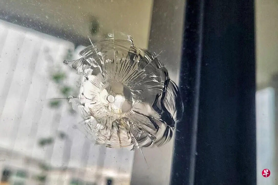 多名居住在义顺11道绿欣园(Adora Green)私人组屋的居民向本报申述,从去年6月开始,住家单位窗户都被神秘客发射“小铁球”击穿。据悉,主要是第347A和347B座组屋8楼至10楼间的单位遭殃。