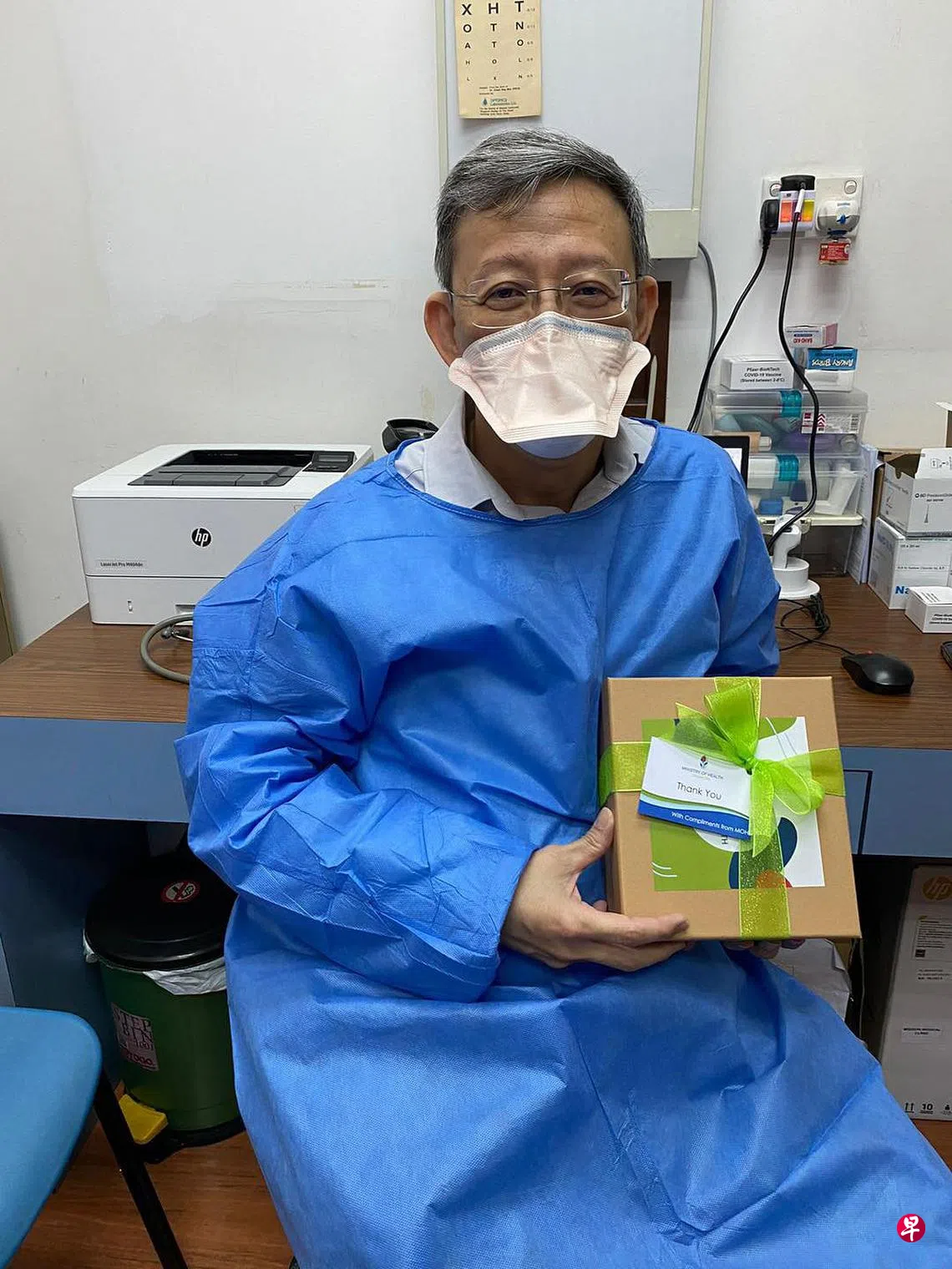 卫生部为公共卫生防范诊所送上食品礼盒,感谢诊所医疗人员为抗疫工作付出的努力。
