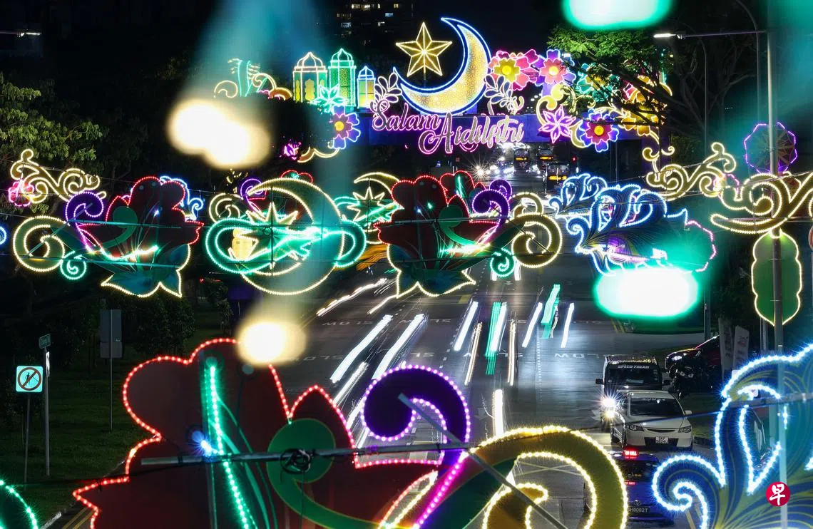 星月象征感恩之情,花朵寓意充满希望的新开始,五彩缤纷的节庆彩灯照亮沈氏道、樟宜路和芽笼路的街道,准备迎接来临的斋戒月。