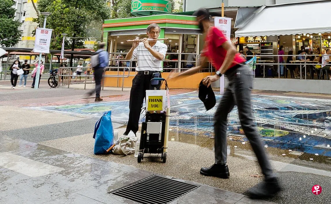 暂别街头舞台两年,黄奕福昨天终于如愿以偿重新拿起竹笛,为过往的行人吹奏《我只在乎你》《月亮代表我的心》等经典老歌。