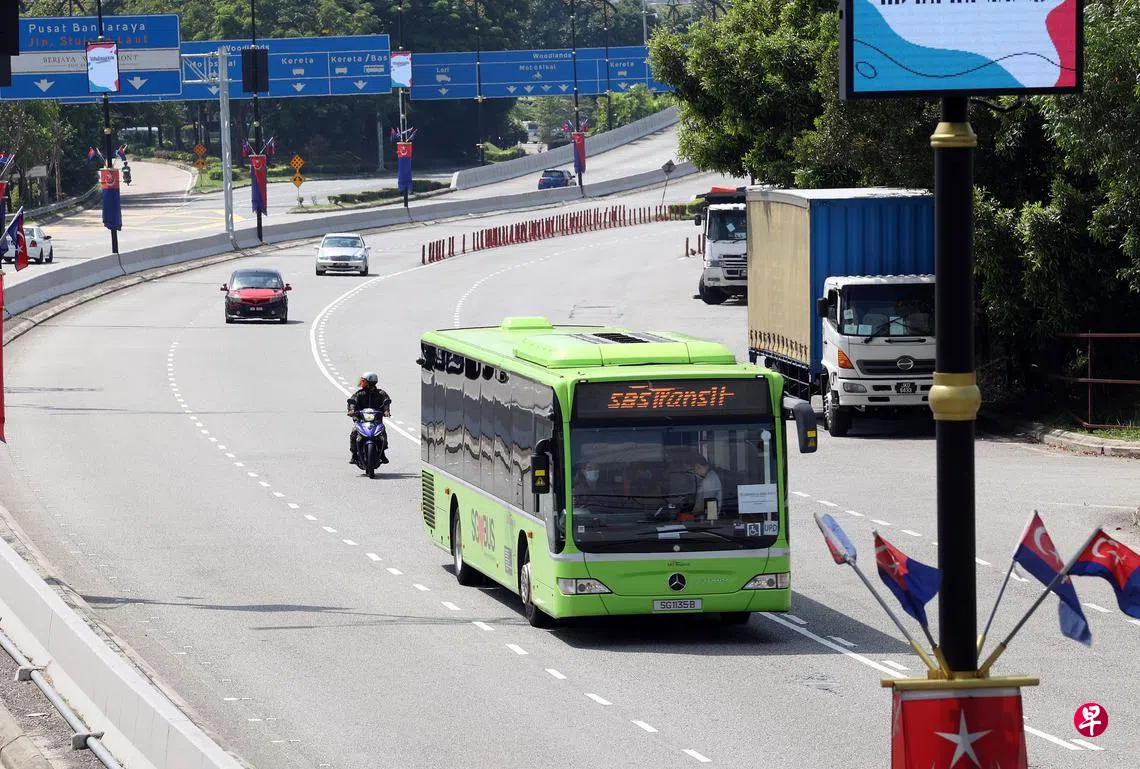 随着新加坡与马来西亚的陆路边境全面开放,我国的跨境公共巴士昨天也开始试跑,为重新投入运作做准备。《联合早报》摄影记者在新山关卡外捕捉到新捷运巴士在行驶的画面。陆路交通管理局发言人受询时指出,提供跨境巴士服务的本地巴士公司已在努力尽快恢复服务,并正在重新部署和培训巴士车长,以及让车长熟悉路线。