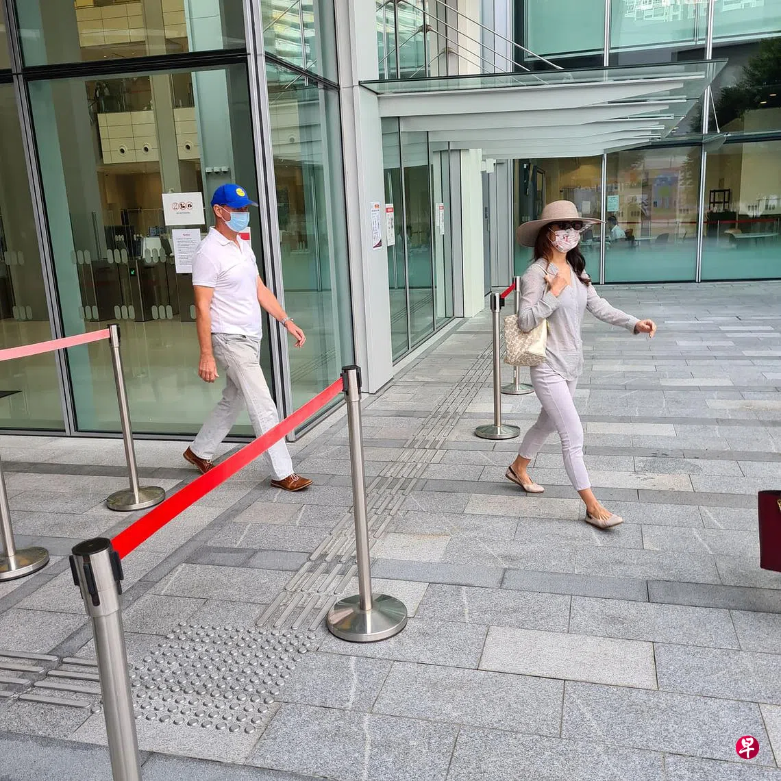 一对夫妻被指在滨海湾金沙时没把口罩戴好,对安全距离大使大声嚷嚷,妻子甚至还涉嫌扯下安全距离大使的口罩,两人昨早被控。