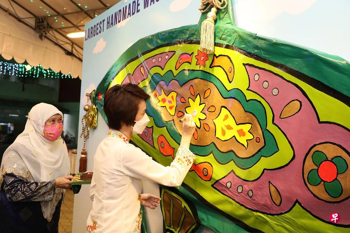 武吉甘柏邻里中心前日(4月1日)举行“开斋节夜市”亮灯仪式,这个本地最大的马来传统月亮风筝就在仪式上亮相。这个三米的巨型风筝由50个居民义工用再循环材料完成。