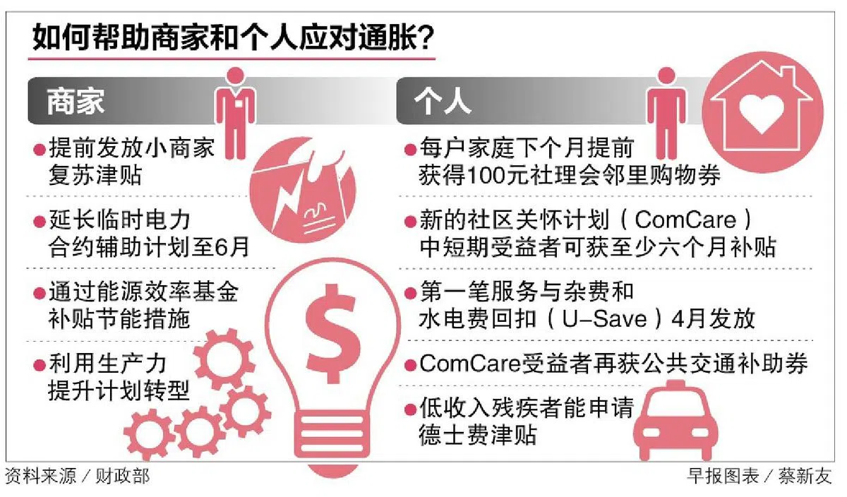 各国在疫情后通过扩充经济刺激需求,但供应链跟不上需求的增长,再加上乌克兰战争引发的资源紧缺,进一步推高商家和消费者成本。政府下来会通过预算案中的短期援助措施和长期转型计划,帮助新加坡人和企业应对通货膨胀压力,并会在外部情况恶化时,额外提供必要援助。