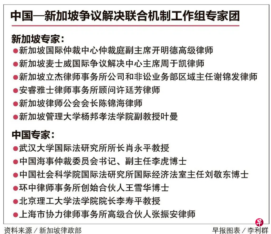 我国律政部和中国国际贸易促进委员会昨天宣布,组成12人专家团,评估设立中国—新加坡争议解决联合机制在法律上是否可行。