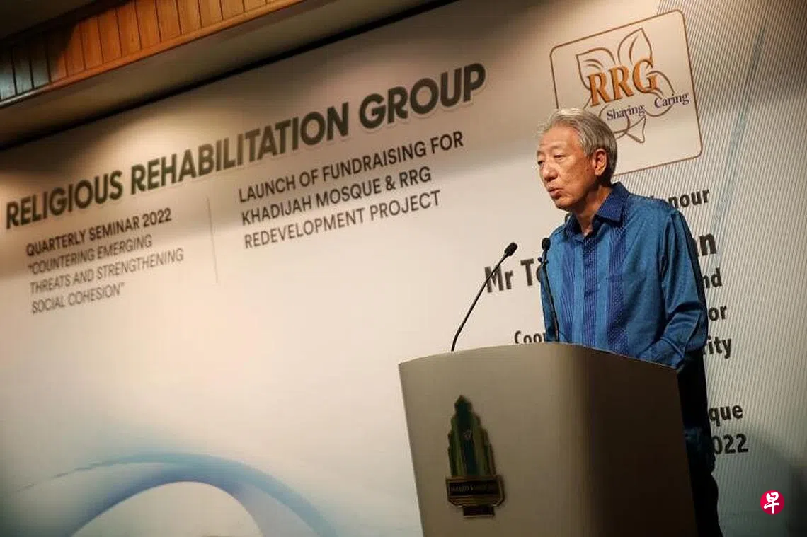 国务资政兼国家安全统筹部长张志贤表扬宗教改造小组(Religious Rehabilitation Group,简称RRG)等民间组织多年来不间断的社区联系工作,即使在冠病疫情期间,也继续通过视讯同年轻人和客工等群体交流,协助加强社会对抗恐怖主义的韧性。