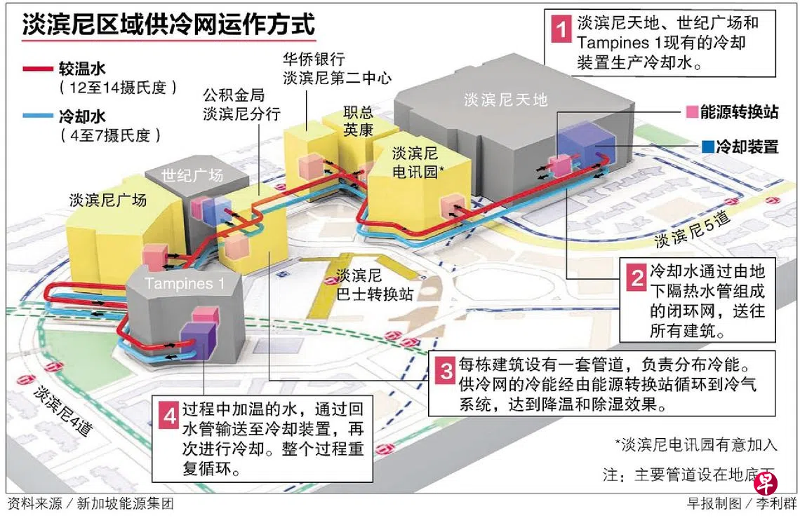 新加坡能源集团耗资4000至6000万元,为淡滨尼七栋建筑打造区域供冷网络,预计在2025年上半年投入运作。