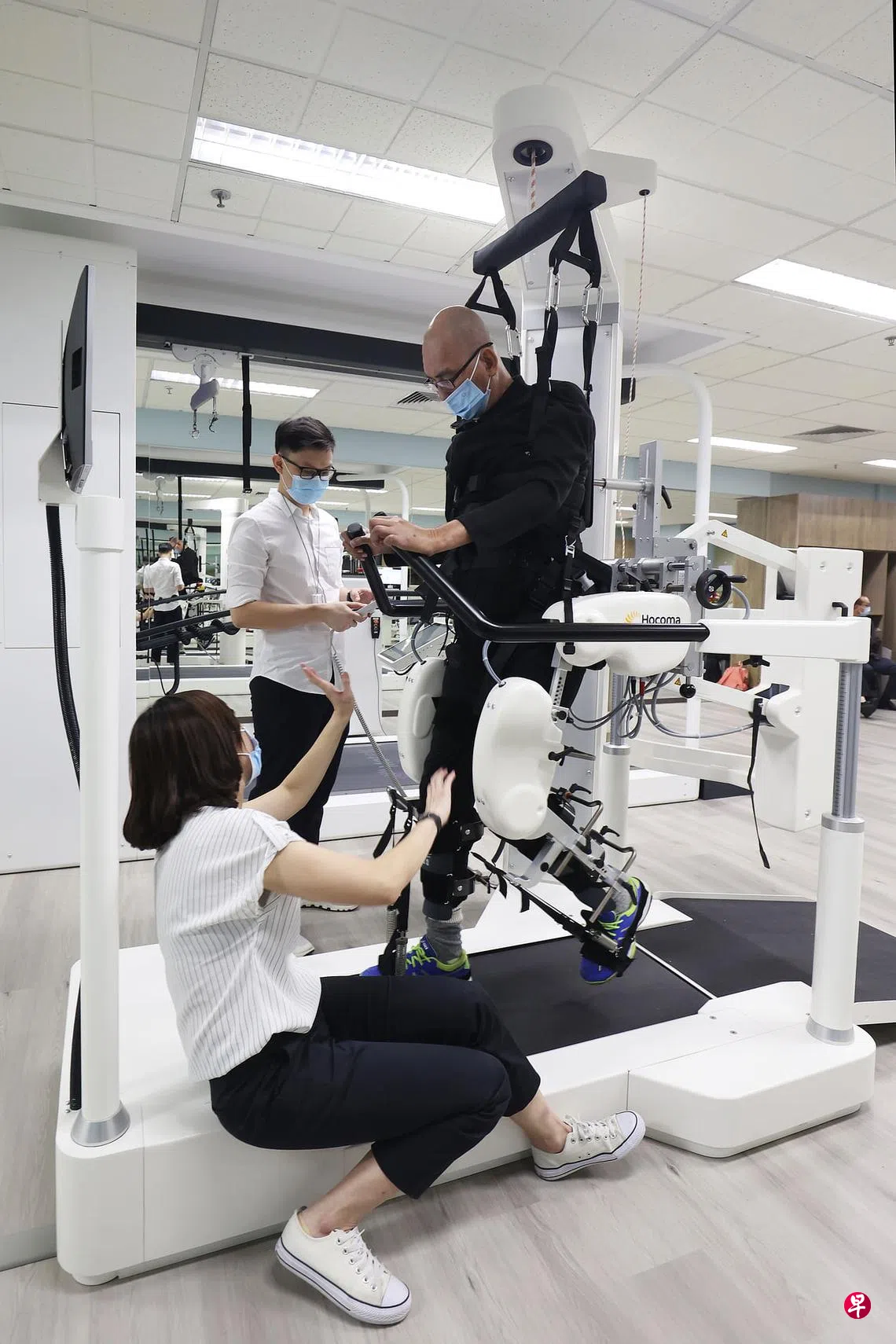 昨天正式投入运作的新加坡机器复健中心(Singapore Robotics Rehabilitation Centre)引进的这款物理治疗设备,可协助神经系统疾病患者改善动作失能的状态,重新锻炼步行、保持平衡等动作。