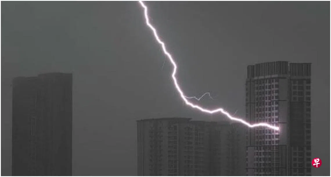 全岛多处前天(4月23日)下午下起雷阵雨,有网民拍下闪电划破天空,击中组屋的瞬间。