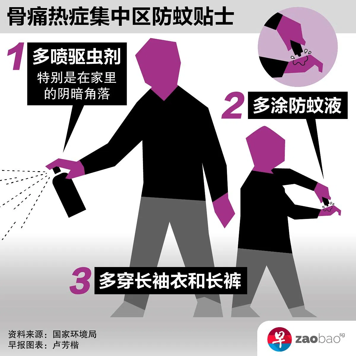 若公众居住在骨痛热症集中区或发现周围有很多蚊子,环境局也建议采取三个额外的防蚊步骤: