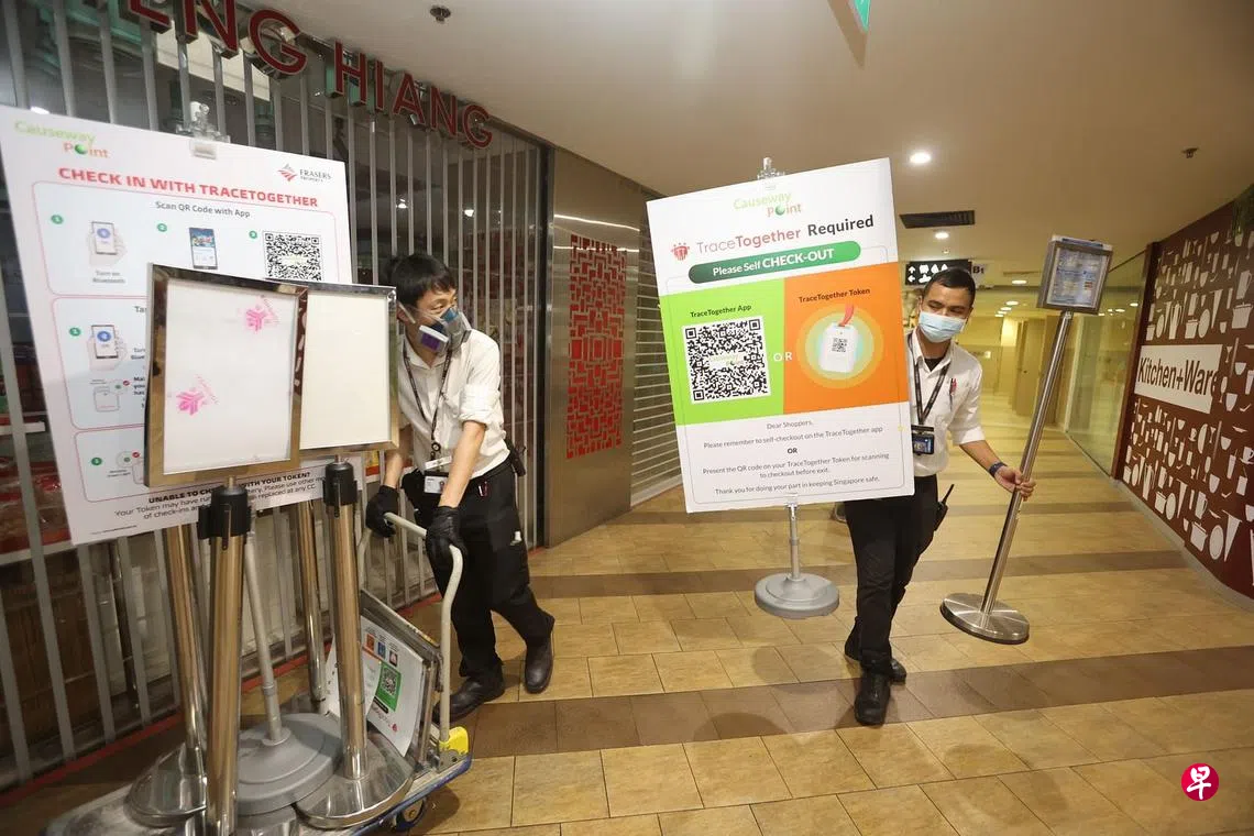 拆掉栏杆、收起感应器,全岛多个场所昨晚陆续移走相关设备,因为从今天起,公众进入购物商场时,不必再使用合力追踪应用或便携器登记。