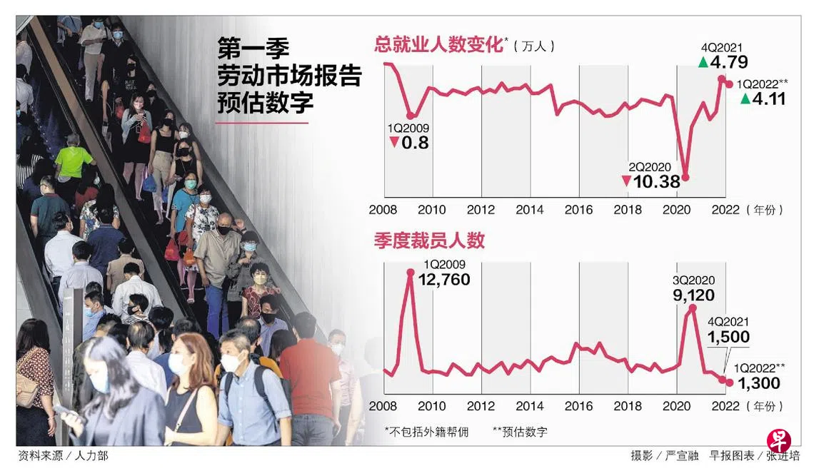 人力部也说,接下来几个月,经济复苏将继续推动对员工的需求,当局预计失业率将保持在低水平,就业则会保持增长势头。另外,随着我国4月起大幅度放宽边境措施,下一季的非居民就业人数预计还会继续增加。