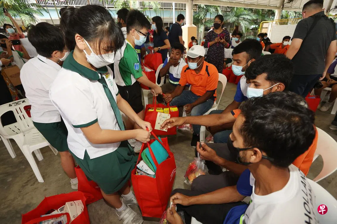 正华小学连同荷兰—武吉班让市镇会昨天举办了一场小学生给客工送礼包的活动。活动也让学生向客工提问,让孩子们更了解这些客工叔叔。