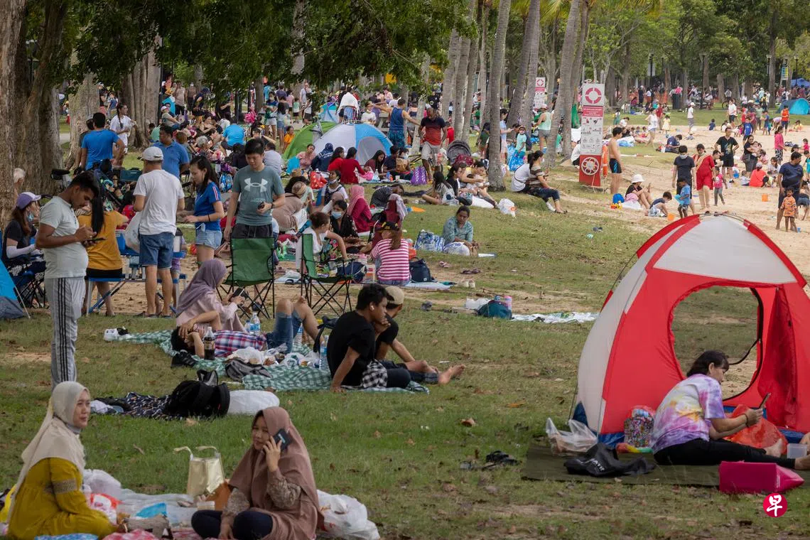 据国家公园局的公园客流量网站safedistparks.nparks.gov.sg显示,昨天中午,三巴旺温泉、武吉知马山、东海岸等公园和景点都出现高于平日的人流。