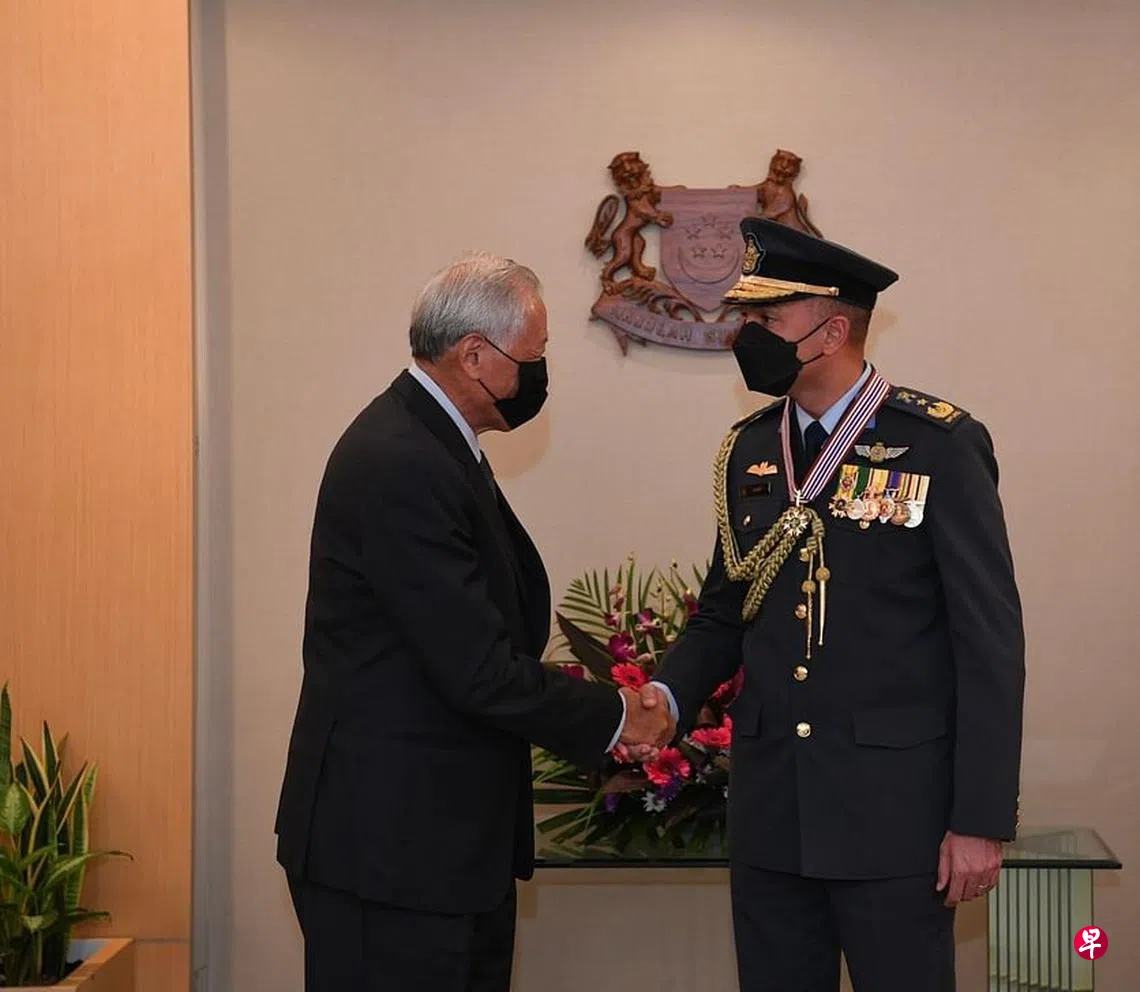 文莱皇家空军总长沙里夫准将获哈莉玛总统颁发卓越功绩服务勋章(军事)。国防部长黄永宏医生前天在国防部举行的授勋仪式上为他颁发勋章。