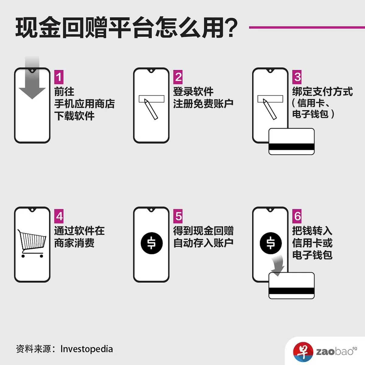 本地提供现金回赠的电商平台包括:Grab、Fave、Shopee和ShopBack等。它们都有手机软件方便消费者使用,用法如下: