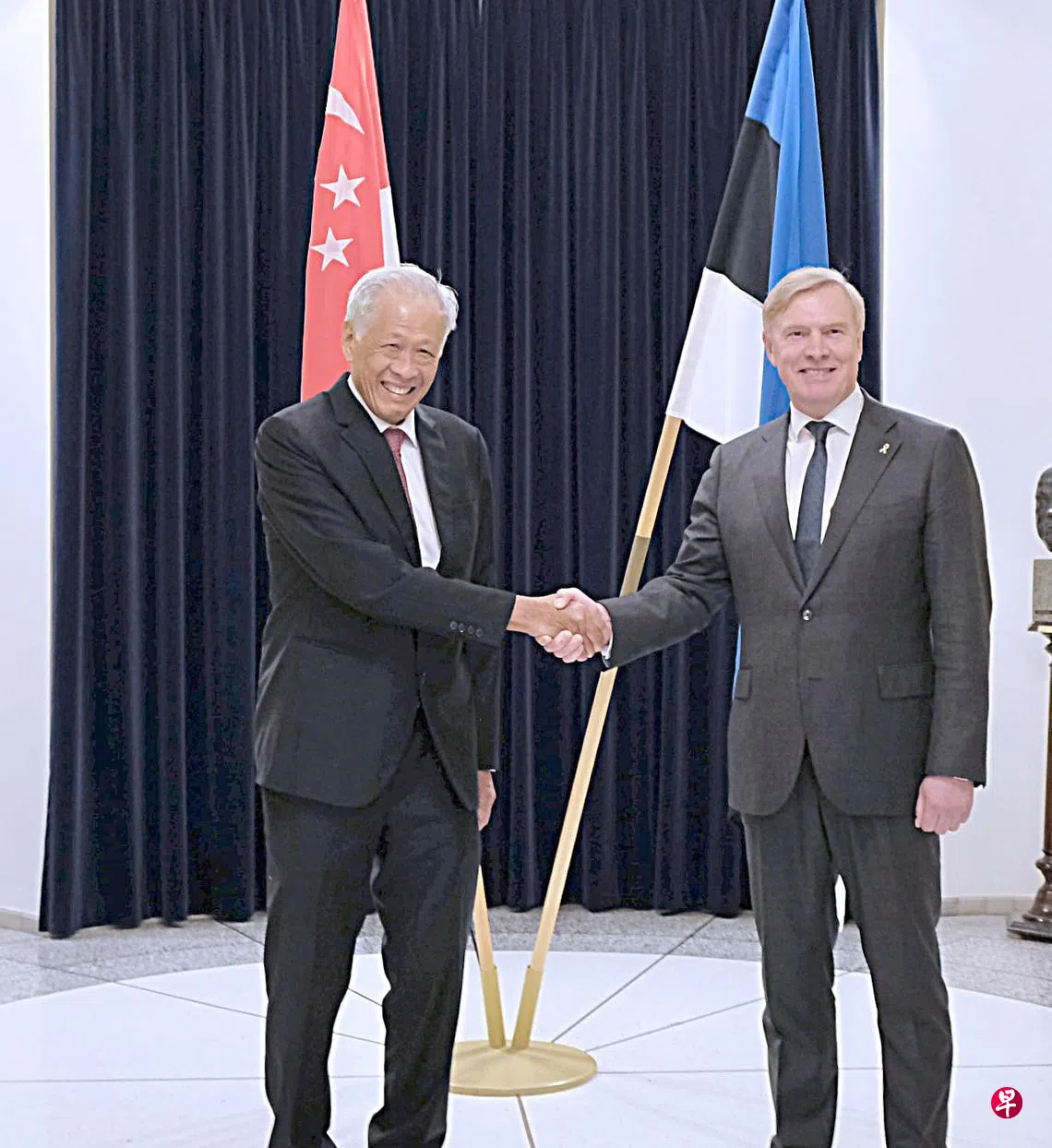 国防部昨天发文告说,黄永宏和卡勒·拉内特(Kalle Laanet)在爱沙尼亚国防部会面,并重申了加强新加坡和爱沙尼亚双边防务合作的坚定承诺。