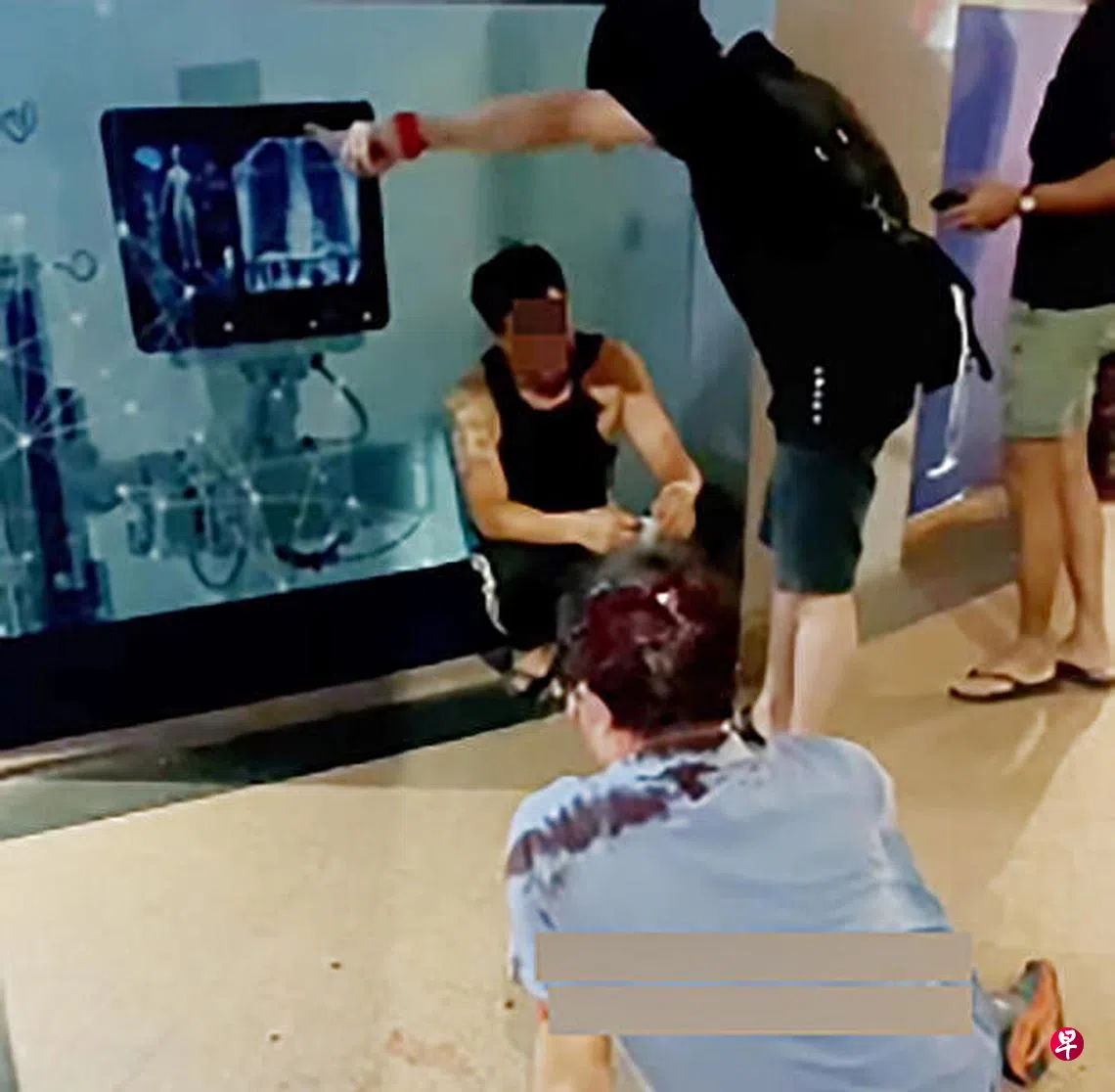 老板形容,被按在地上的男子当时头部已经在流血。“但是背心男不停手,仍继续打他,直到周围的人叫他停手。”