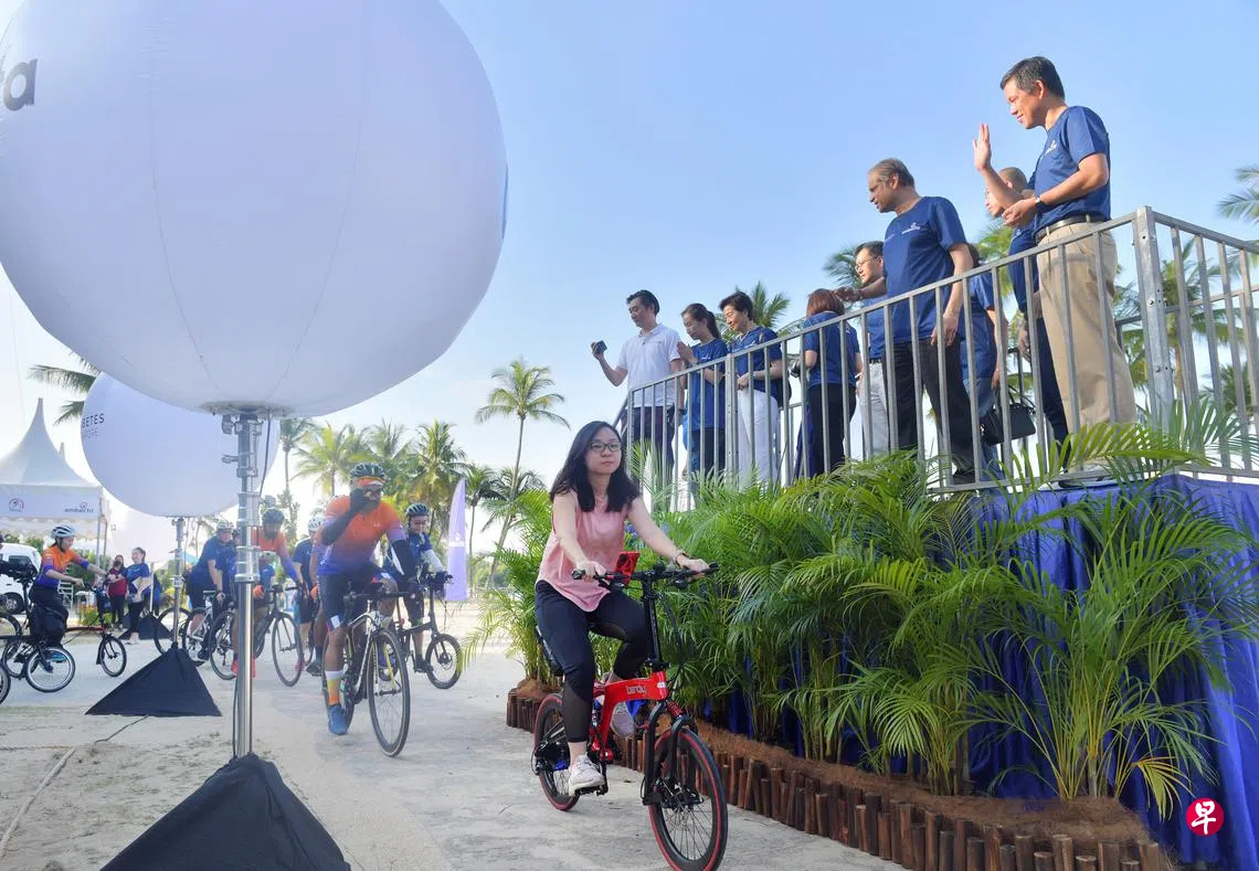 约300人昨天参与新加坡糖尿病协会在圣淘沙举行的公益骑行活动,提高人们对糖尿病的意识,倡导健康的生活方式。