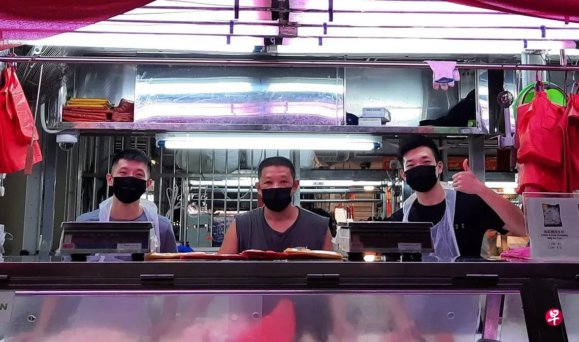 两年前年疫情阻断措施期间,有20多年经验的猪肉贩何国隆(53岁)在后港1巷第105座巴刹的档口HKL Porki生意受影响跌了50%。二儿子何埭淙 (25岁) 当时是一位糕点厨师,看到父亲因生意受挫十分心疼,决定辞职助父亲一臂之力。哥哥何洪烜(27岁)去年也决定辞去财务顾问的稳定工作,投入猪肉档生意当中。