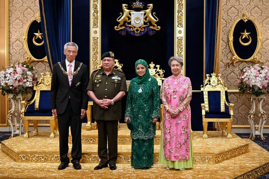 李显龙总理和夫人何晶5月6日在新山大王宫,获马来西亚柔佛苏丹依布拉欣授予拿督勋衔。李总理获封一级王室拿督斯里巴杜卡勋章(SPMJ),何晶则获封一级拿督斯里慕丽亚勋章(SMIJ)。