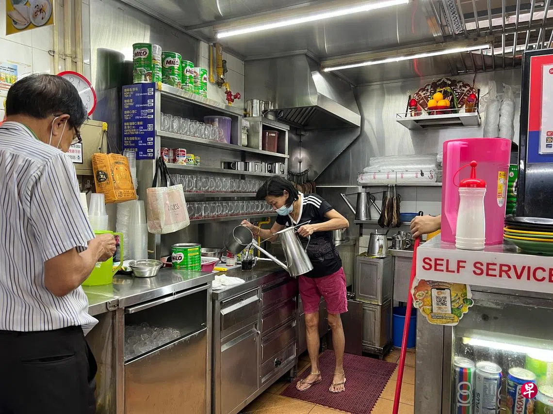 位于直落布兰雅弯熟食中心的顺发茶室,由夫妻俩携手经营,售卖冷热饮,当中有咖啡、茶、美禄以及好立克,价格从6角到1元2角不等。