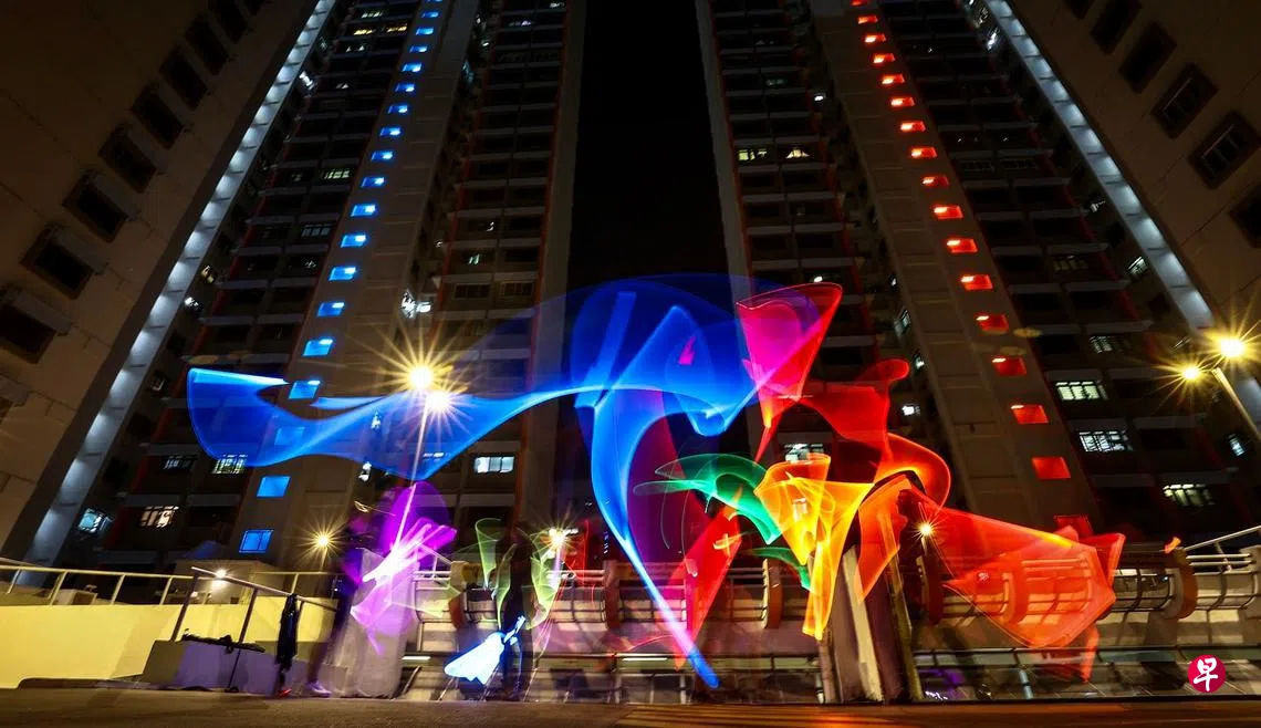 配合串流平台Disney+昨天新推出的星球大战相关影集《欧比旺·克诺比》(Obi-Wan Kenobi),由本地艺术团体Very Small Exhibition创办人李伟烈所带领的九人团队,将灯光装置艺术带入邻里,劳明达地铁站附近捷利歌路(Jellicoe Road)第813座及第815座组屋,晚上7时起一左一右发出代表原力的光明和黑暗面的蓝色及红色灯光。