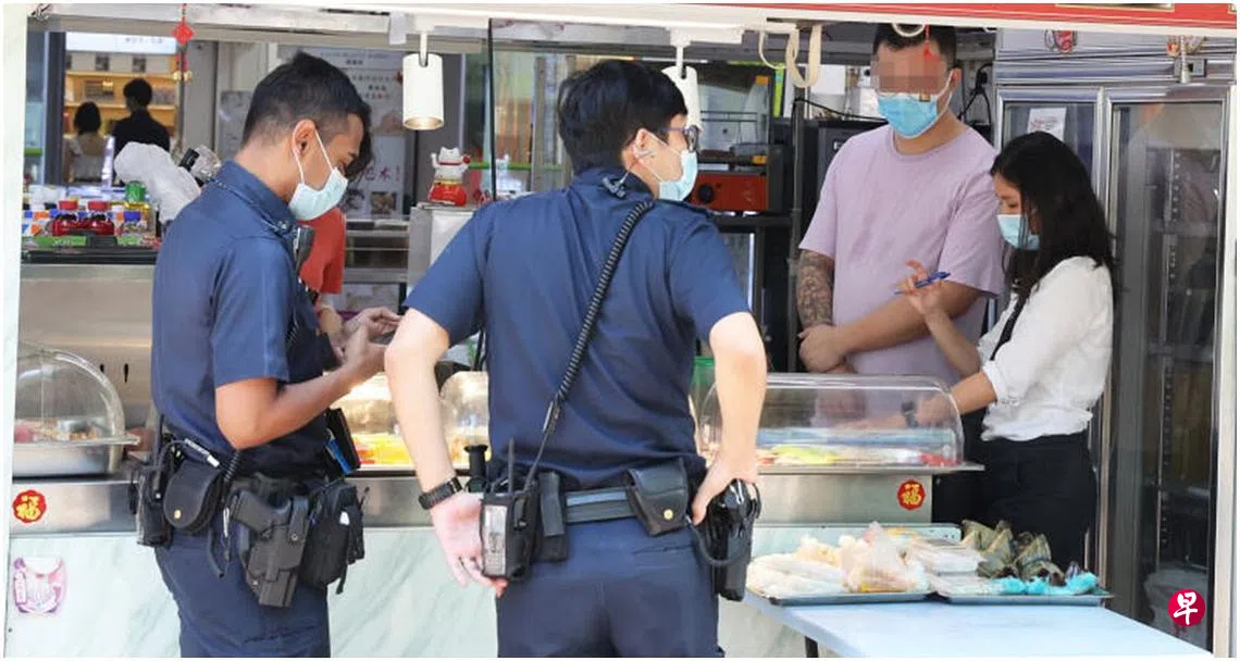 记者到场时,看到至少六名警员在场,其中一人向女摊主问话。