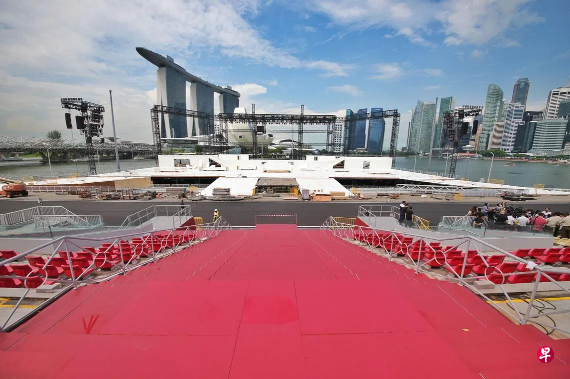 筹委会主席吴培铭准将说,过去两年的庆典受到疫情限制,今年庆典的规模尽可能恢复至往年水平。据悉,浮动舞台最多可容纳约2万6000名观众,这预计是滨海湾浮动舞台重新发展为卫国广场前的最后一场国庆庆典。