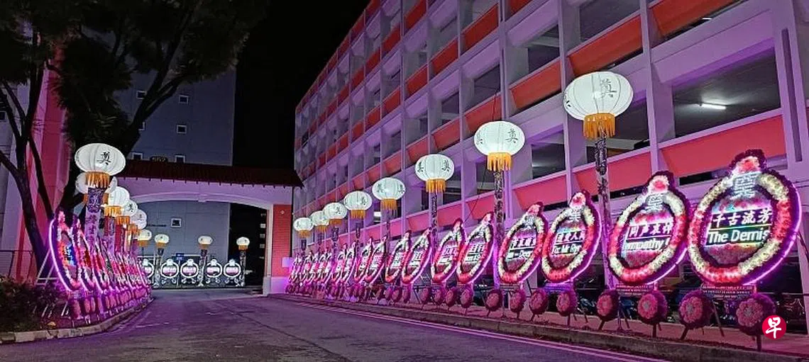 电子花圈限制范围料扩大!组屋区办丧礼,停车场、人行走道、马路旁将禁摆电子花圈,至于数量,或限制不超过10个。