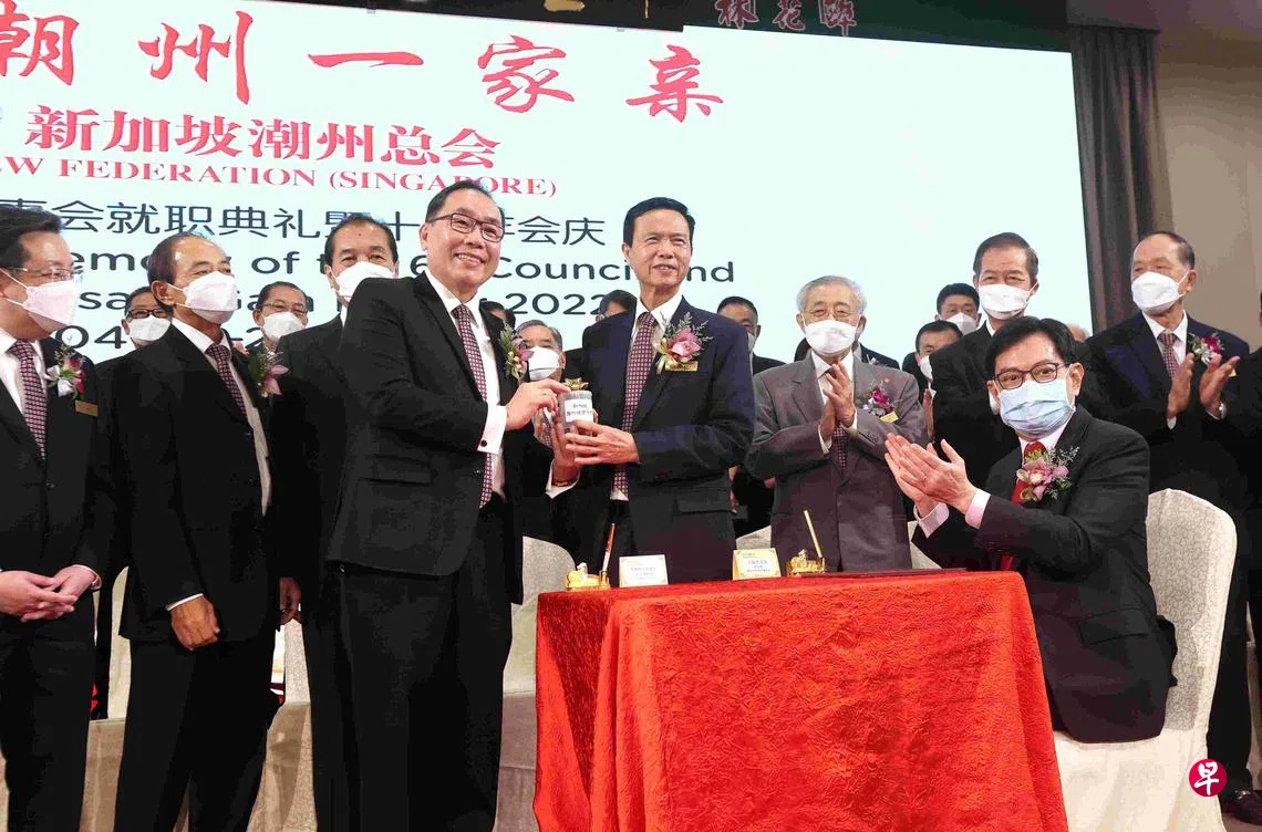 潮州总会欢庆成立10周年,并举行第六届理事会就职典礼,由醉花林俱乐部前总理张建安出任会长,他个人捐出8万元,醉花林捐出3万元给潮州总会,以推动会务的发展。