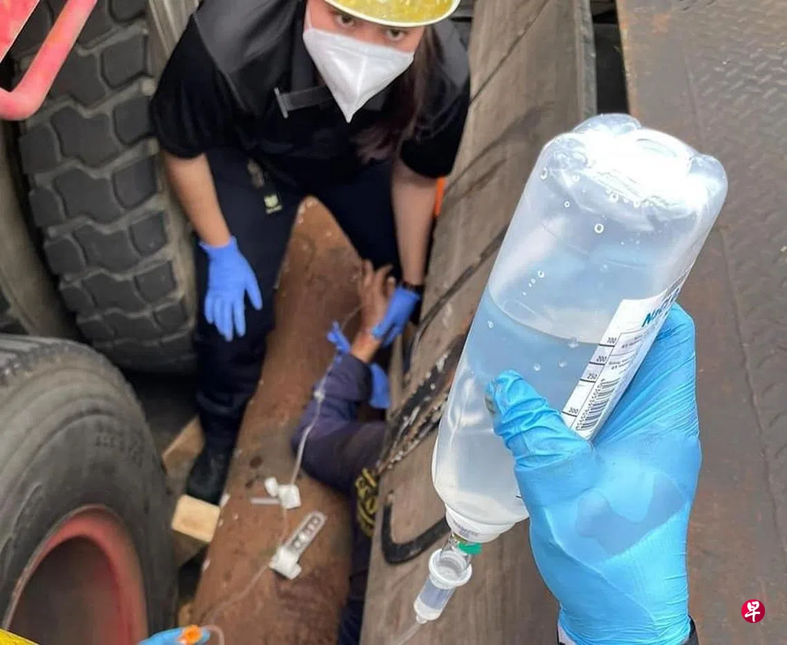 民防部队证实,救援人员到场后随即动用两个起重气垫(air lifting bag)将金属轴撑起。死者脱困后送往陈笃生医院抢救,当日伤重不治。