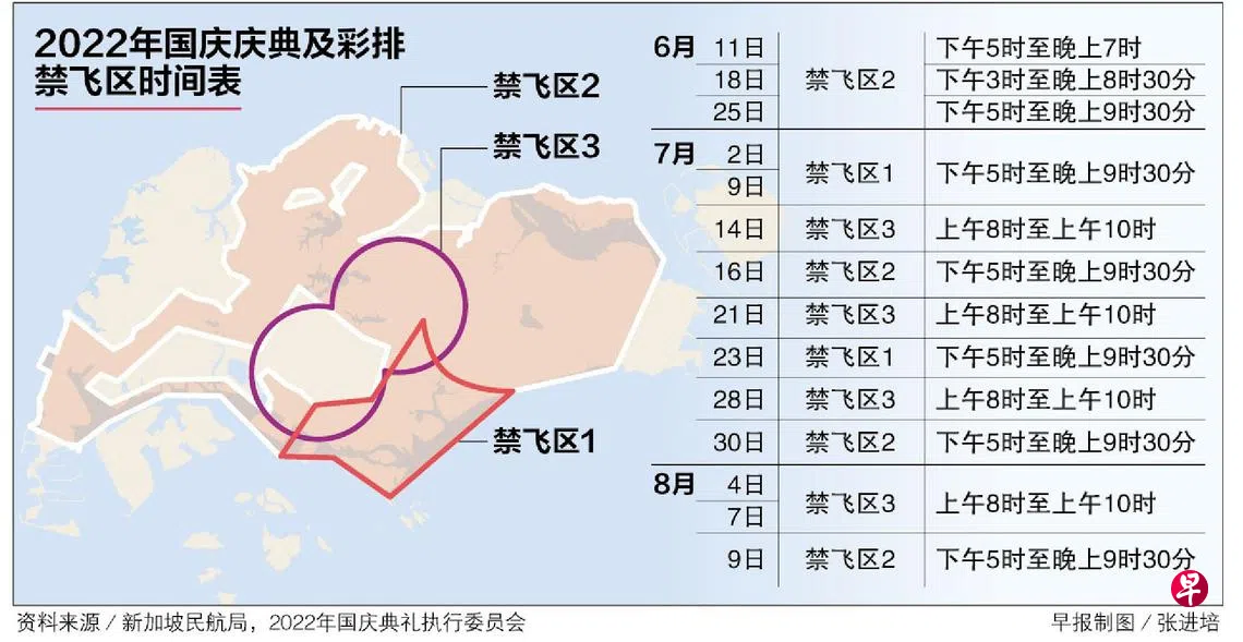 为了配合国庆活动,全岛多个地区于6月到8月的指定时间将划为临时禁飞区,以确保国庆庆典及彩排可安全地进行。